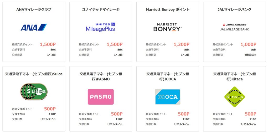 3.ポイント交換先が豊富