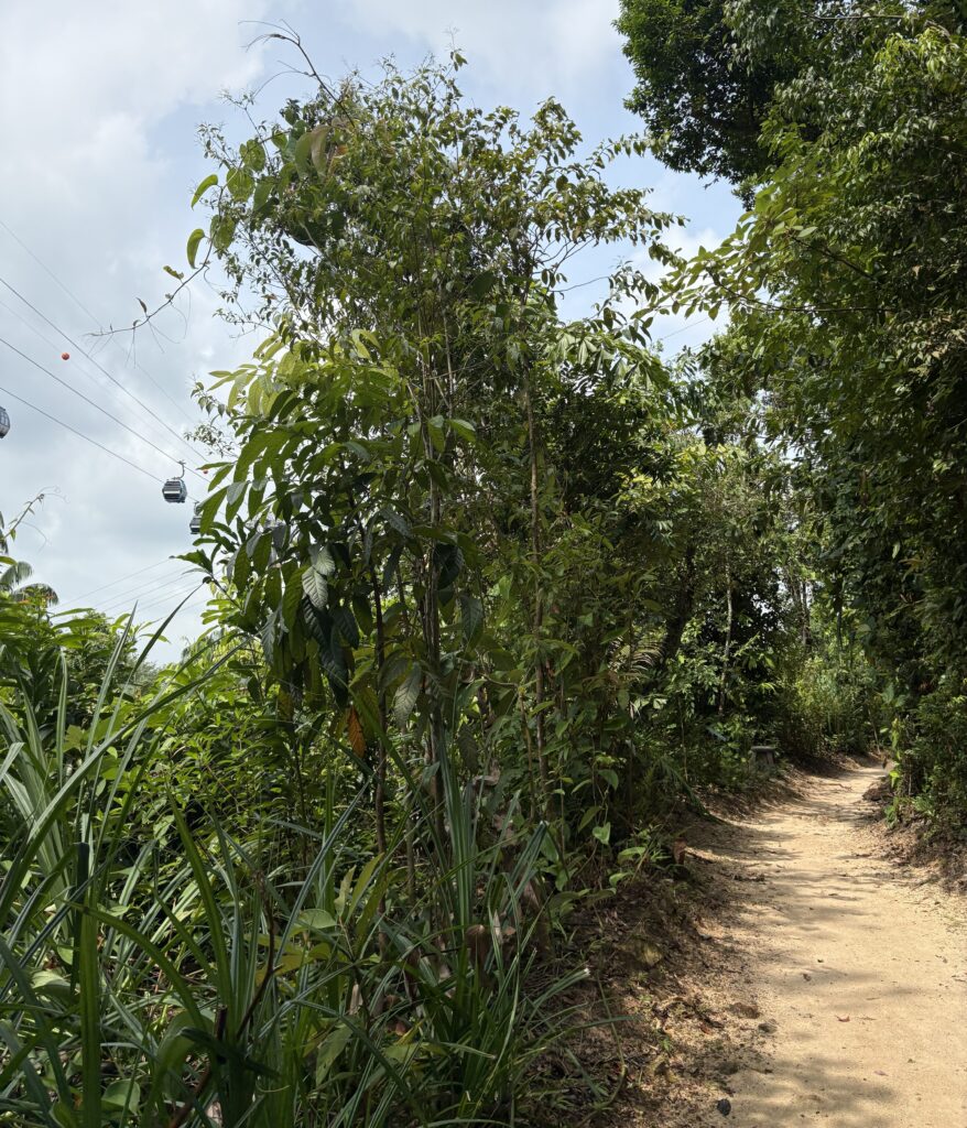 私たちはケーブルカーでセントーサ駅に降りた後、山頂のチケットカウンターが近かったので、そちらへ行きました。ただ、徒歩で15分程度かかったのと、山の小道みたいなところを歩かなければいけなかったので、人も全然いなくて、たどり着けるかかなり不安になりました(笑)。