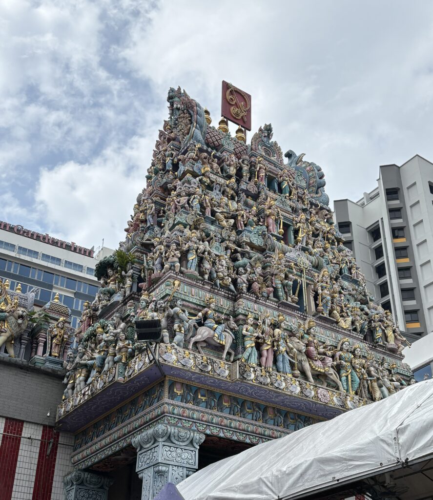 タクシーでリトル・インディアへ移動し、スリ・ヴィーラマカリアマン寺院へ。スリ・ヴィーラマカリアマン寺院はシンガポールでも最古のヒンドゥー教寺院のひとつで、靴を脱いで中に入ることができます。